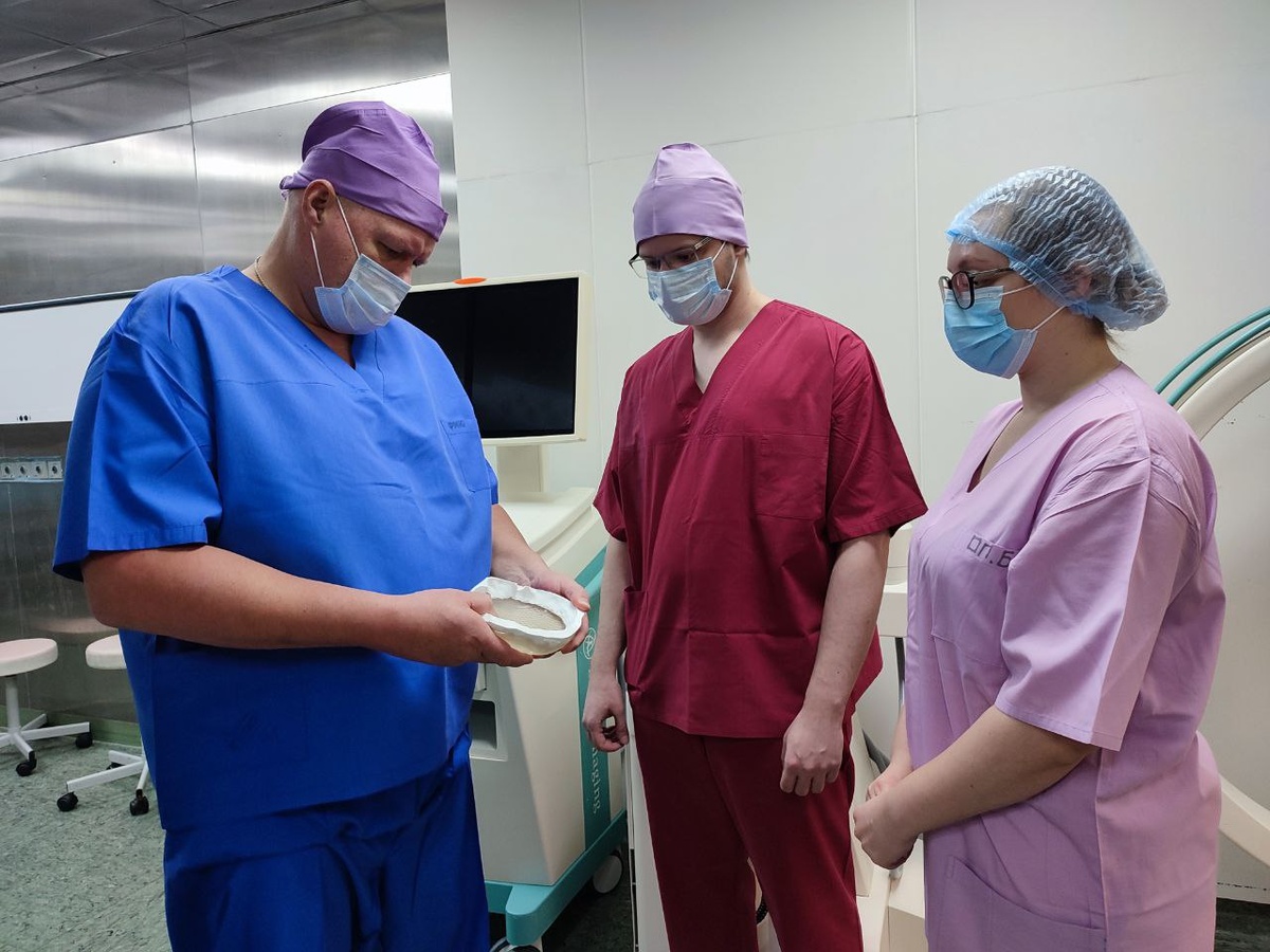 В Кузбассе врачи восстановили череп участнику СВО с минно-взрывным ранением. Уникальную операцию провели в Кузбасском клиническом центре охраны здоровья шахтеров. Отсутствие части черепной кости – последствие тяжелого минно-взрывного ранения. Головной мозг был защищен только кожей. Для подготовки мягких тканей врачи установили тканевый экспандер из синтетического материала и наполнили его физраствором. В течение нескольких недель конструкция растягивала кожу и формировала достаточный запас здоровой ткани, необходимый для проведения операции. На основе результатов компьютерной томографии для бойца изготовили индивидуальный 3D-имплантат. По желанию хирургов оснастили пластину специальными упорами, обеспечивающими точную установку. Операцию выполнили заведующий нейрохирургическим отделением Михаил Фёдоров и заведующий отделением травматологии и ортопедии №3 Евгений Исаев. Комплексный подход к лечению позволил не просто закрыть дефект, а восстановить анатомическую целостность и функци