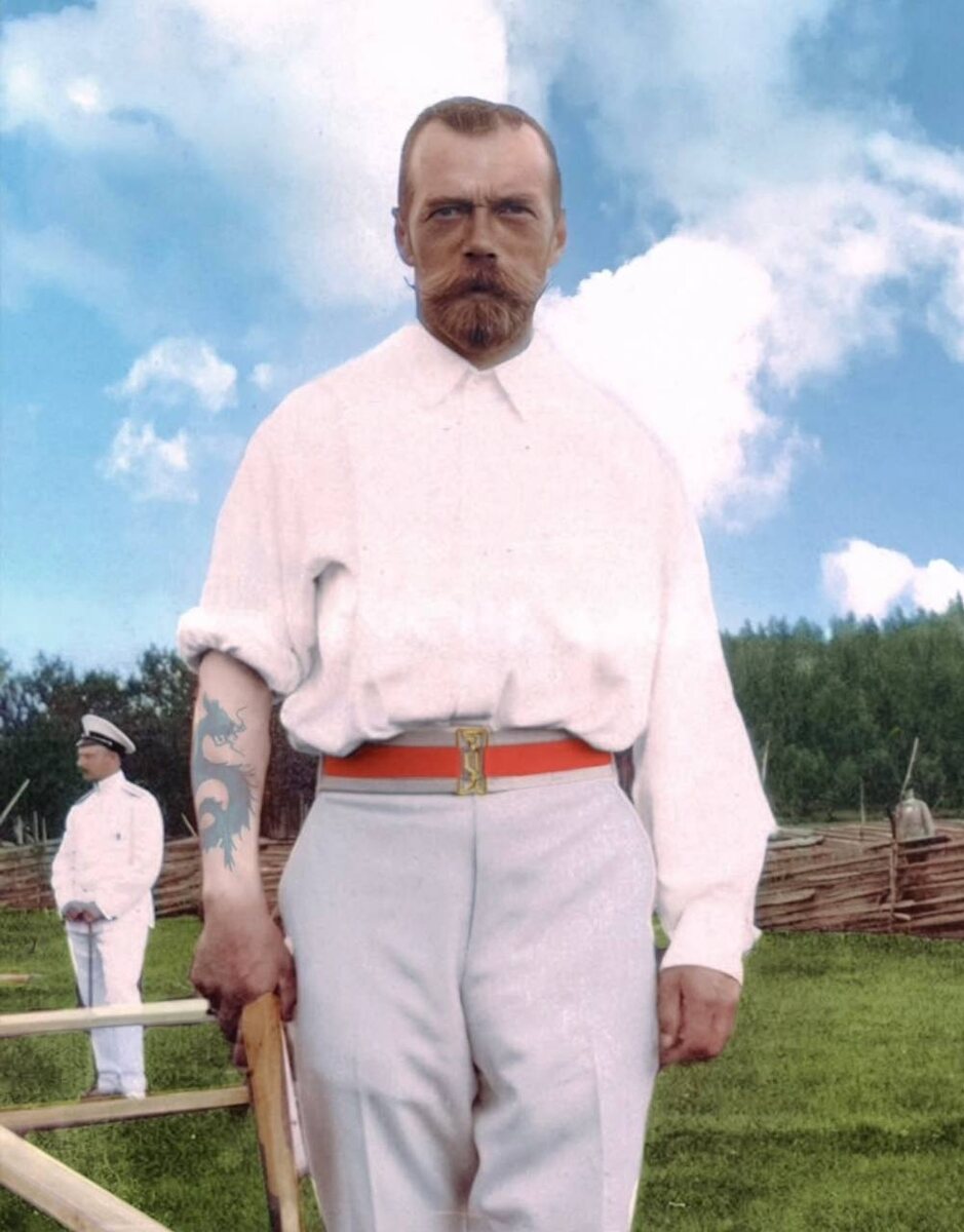 Об этом знали только близкие! У императора Николая II была татуировка — дракон, символ власти и силы, нанесенный во время его визита в Японию в 1891 году. Свидетельством свидетельством этому служат несколько фотографий, но рассмотреть рисунок на них очень сложно. На этой ☝🏼фотографии татуировка была цифровым способом восстановлена по едва заметным следам на оригинальном снимке, Это позволяет увидеть легендарную тату императора во всей красе.