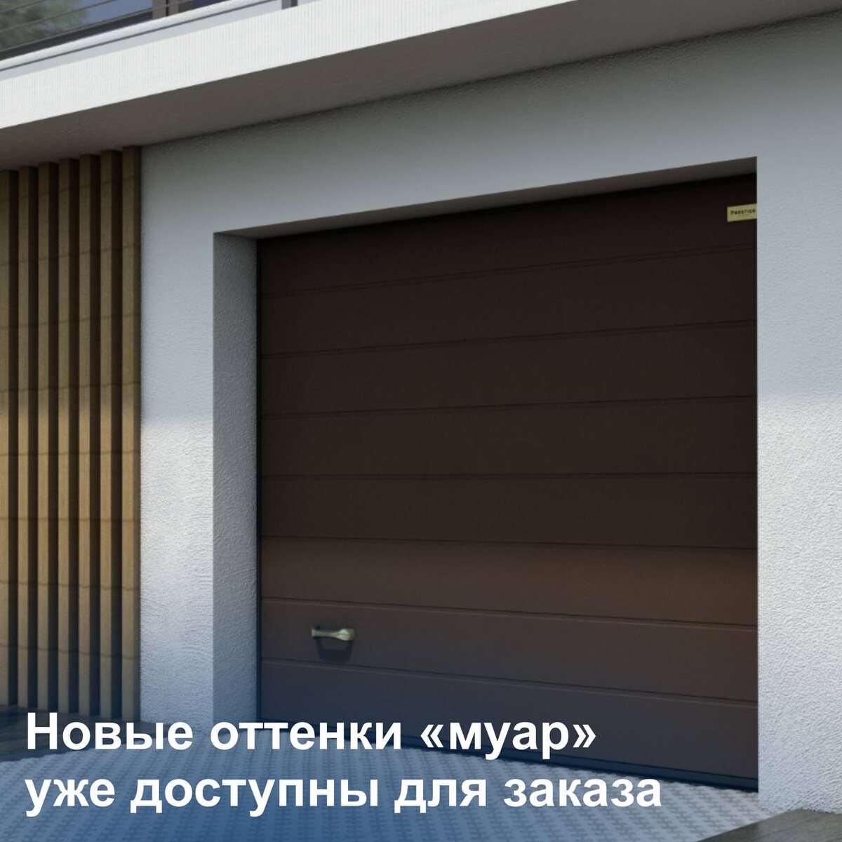 Теперь в коллекции «муар» семь цветов: RAL 7016M, RAL 9005M, RAL 7039M, RAL 7021M, RAL 7024M и два изысканных RAL 8017M и RAL 8019M. Этот визуальный эффект усиливает глубину цвета и формирует на поверхности мелкозернистую текстуру. Она напоминает мягкую шероховатую кожу. 1. Эстетическая выразительность (цвет выглядит сложнее и богаче); 2. Универсальность дизайна (вписывается в разные стили: от классики до хай-тека, а также сочетается с разными материалами: металлом, деревом и кирпичом); 3. Устойчивость к внешним воздействиям (дольше сохраняет насыщенность цвета, обладает повышенной стойкостью к УФ‑излучению, влаге); 4. Маскирует мелкие дефекты в период эксплуатации (мелкозернистая структура визуально сглаживает незначительные царапины, потёртости). А теперь подробнее о новинках: ✔️Цвет RAL 8017M: коричневый шоколадный Этот оттенок гармонично сочетается с фасадами в природных и классических тонах. Шоколадный «муар» добавит секционным гаражным воротам тёплый и благородный вид. Из плюсов