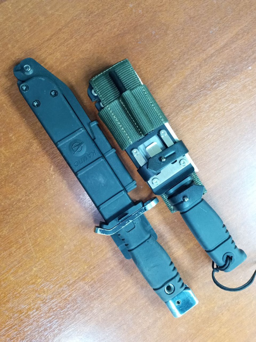 В ответ на пост Добьём "острую" тему и сравним два изделия КАМПО. Что объединяет КАМПО-В и 6х9-1? Они относятся к специалитету в плане назначения. Сходные конструкции но имеющие и различия. Рукояти с идентичным строением, с той разницей, что у КАМПО-В нет отдельного от рукояти навершия, используемого у штыка для крепления к оружию. Так же, не смотря на то, что у обоих изделий на рукояти имеется стеклобой, у КАМПО-В он плоский, без острия, что кстати было сделано по просьбе военнослужащих, так как если нужно вогнать нож при помощи удара по рукояти, снижается риск травмы. Разумеется штык-нож отличается развитой гардой, что в общем понятно. Не смотря на разницу в длине клинка, имеется и ряд сходных черт. Конструкция клинка КАМПО-В повторяет параметры и характеристики штыка, что явно не плохо. А вот ножны имеют совершенно разную конструкцию и назначение и вес. 6х9 гораздо тяжелее, да объёмнее. Далее только эксплуатация покажет, может ли это изделие называться ножом для выживания, но то что