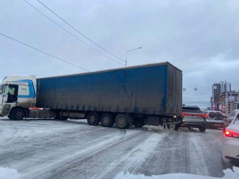 По предварительной информации, фура перегородила проезжую часть, в результате чего движение оказалось затруднено или полностью заблокировано.