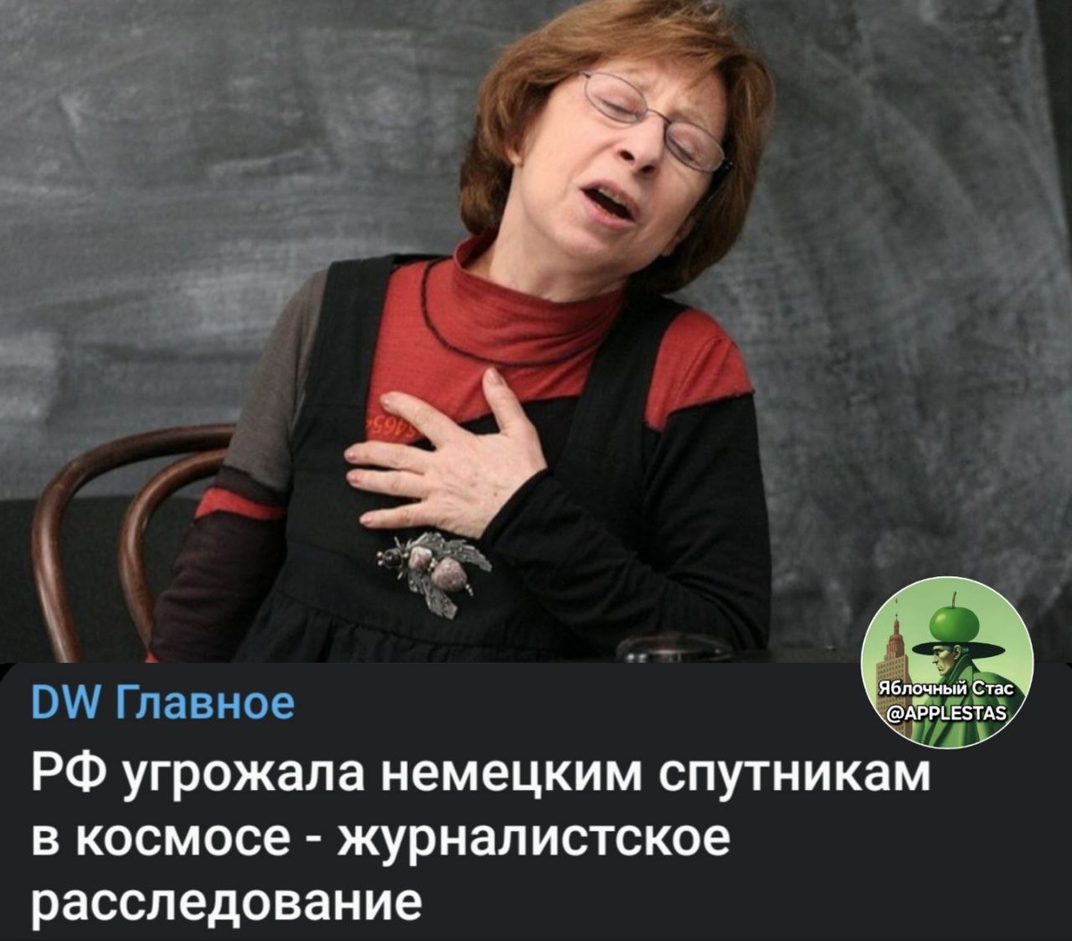 Ой, простите нас, немецкие спутники. Гансы пишут, что наши маневрируемые спутники "опасно сближались" с немецкими. А те беззащитно летели по орбите, потому что не могли сбежать от российских аппаратов. Но почему сразу "опасно сближались?" Наши спутники просто хотели познакомиться. В космосе иногда так холодно и тоскливо – хочется общения и тепла. Яблочный Стас
