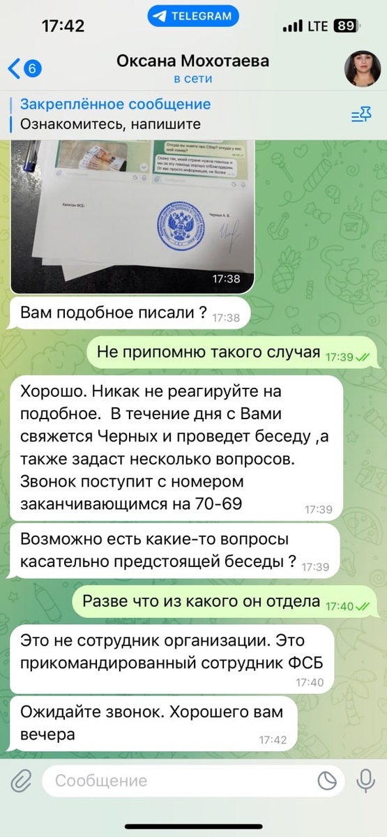 Начиная от попытки дозвониться через Телеграм и заканчивая мифическим, неведомо откуда прикомандированным, сотрудником ФСБ. Я уж не буду говорить по поводу качества подложных документов. Это какой-то детский уровень. Уж коли у Вас - базы бывших сотрудников (видимо, тут тоже ТГ и Ватсап виноваты), проявите уважение, сыграйте в эту игру профессиональнее, а то - пара вопросов, и вы - попой в луже. P.S. Естественно звонить мне после такого никто не стал, а жаль, я ждал…