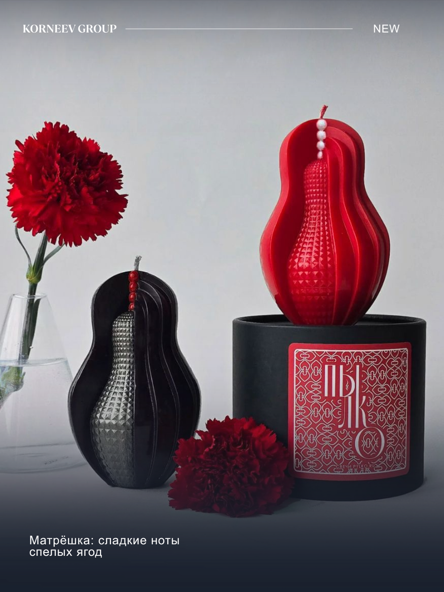 🍯❤️ Korneev Group представляет: аромасвечи, которые пробуждают лучшие воспоминания. Это не просто свечи. Это — мгновения русской сказки, воплощённые в изящных формах: • Матрёшка: сладкие ноты спелых ягод. • Кокошник: тонкие ароматы лугового мёда и полевых цветов. • Банка сгущёнки: тепло бабушкиной выпечки и беззаботное детство. • Упаковка советского печенья: ванильно-сливочное облако ностальгии. Создано с душой, для вашего уюта. При поддержке локального производства. Откройте для себя магию родных ароматов в «YouПитер».