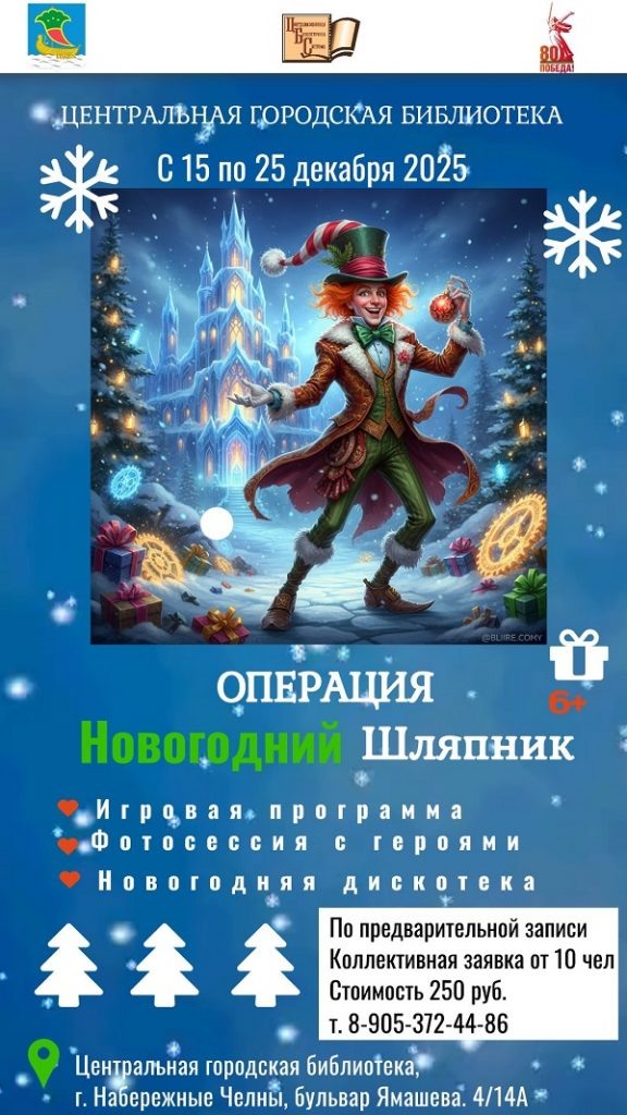 А еще захватывающая миссия по спасению Нового года с веселыми испытаниями и конкурсами в духе Страны чудес с неожиданными превращениями и магическими сюрпризами. Для детей от 7 лет и их родителей — всех, кто верит в чудеса и любит сказочные приключения! Когда: