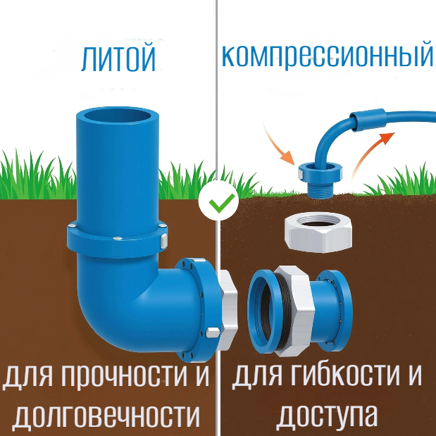 Выбор между литыми и компрессионными фитингами для ПНД труб — это не вопрос цены или простоты монтажа. Это фундаментальное решение, определяющее надежность, долговечность и безопасность всей трубопроводной системы. 🧐 В этой статье мы отбросим маркетинг и взглянем на вопрос с технической стороны. Какой тип соединения прочнее? Что прослужит дольше? И, главное, как не ошибиться в выборе? Проведем детальный анализ по ключевым инженерным параметрам. Руководствуйтесь не стоимостью, а назначением вашей системы. Девиз: "Поставил и забыл на 50 лет". 💯 Девиз: "Гибкость, ремонтопригодность и простота". 🛠️ С технической точки зрения, литые фитинги, смонтированные сваркой, — это бесспорный лидер по надежности, прочности и долговечности. Они становятся частью трубы, создавая по-настоящему вечную систему. Компрессионные фитинги — это smart-решение для конкретных задач, где важна не абсолютная прочность, а разъемность, скорость и простота монтажа. Главная ошибка — использовать компрессионные фити