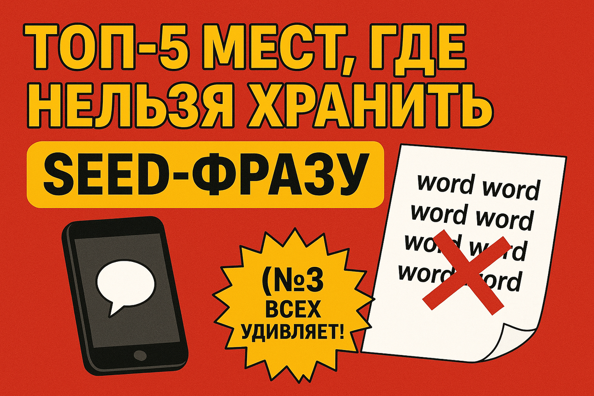 Поэтому сегодня разберём ТОП-5 мест, где НЕЛЬЗЯ хранить seed-фразу, даже если кажется, что «ну тут-то точно никто не найдёт». И да, №3 действительно удивит, но давай обо всём по порядку. Если когда-то у тебя мелькала мысль: «Сделаю скрин и сохраню, чтобы не потерять» — сразу выкинь её из головы.