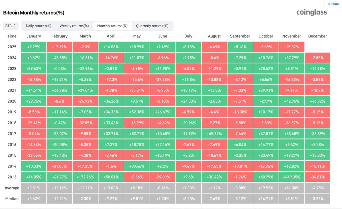 🔸В ноябре цена биткоина упала более чем на 15%, что ставит под сомнение репутацию ноября как «самого сильного месяца для BTC».