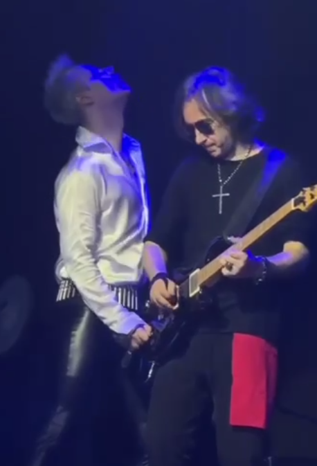 Недавний концерт Ярослава Дронова, более известного как Шаман, в одном из столичных клубов стал наглядным примером того, как накал сценической энергии вдруг переступает допустимые границы. На снимке, сделанном в этот момент, видно: Дронов с короткой светлой стрижкой в белой рубашке и кожаных штанах выгибается в состоянии экстаза, лицо искажено гримасой, а руки тянутся к гитаре музыканта справа — тот, в темных очках и черном наряде, невозмутимо продолжает соло. Жест, в котором Шаман не просто прикасается к инструменту, а начинает раскачивать его в выразительных движениях, в условиях мужского дуэта на сцене выглядел излишне демонстративно и неуместно, подчеркнув тонкую грань между творческой свободой и поведением, способным оттолкнуть даже искренних поклонников. Концерты Шамана, где сменяются лирические вещи и мощные риффы, всегда живут за счет сильного эмоционального накала, но в этот вечер импровизация получила оттенок, который многие восприняли как чересчур провокационный. Пока гитари