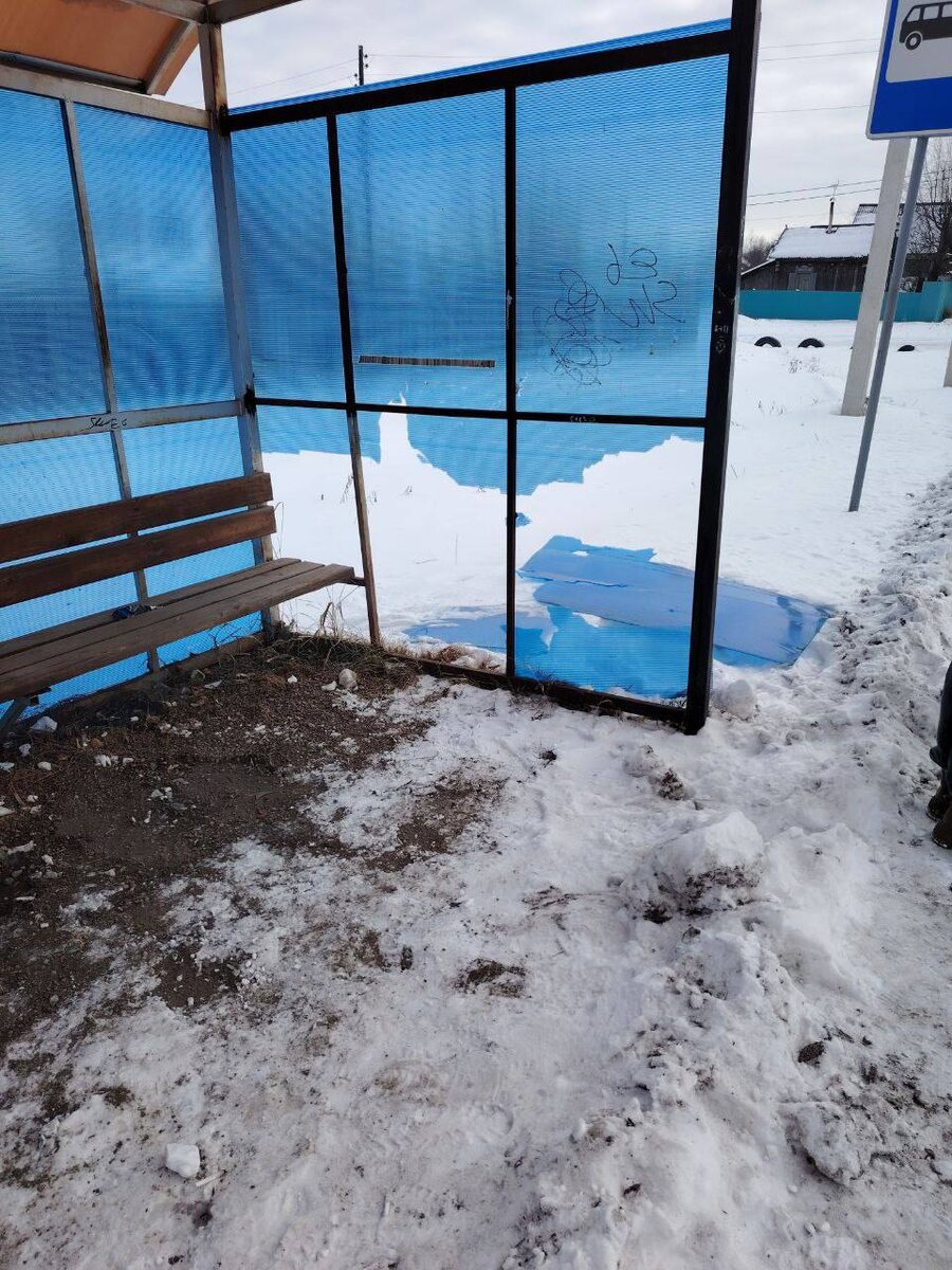 Не установленные вандалы разбили остановку на участке улицы в районе пересечении улиц Луговая и Ключевая