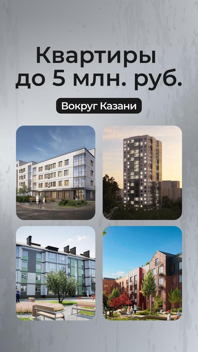 🏡 КВАРТИРЫ ДО 5 МЛН. РУБ — БЮДЖЕТНЫЕ ВАРИАНТЫ ВОКРУГ КАЗАНИ 🔑 ПРЯМЫЕ ПОКУПКИ У ЗАСТРОЙЩИКА 🌍 УДОБНОЕ РЕШЕНИЕ ДЛЯ ПЕРЕЕЗДА Отлично для переезда ближе к Казани или покупки под аренду. Ставки аренды в пригородах — 20–25 тыс. руб. в месяц. 🏢 ЖК УЛ. КАЗАНСКАЯ, СЕЛО ПЕСТРЕЦЫ 💰 Цены от 3,631 млн. руб. за 1ккв. (34 м²). Готовые дома, рассрочка на часть ПВ. 🏢 ЖК ЧЕХОВА, СЕЛО ВЕРХНИЙ УСЛОН 💰 Цены от 4,2 млн. руб. за студию (27 м²). Ремонт можно дозаказать. Готовность — 1 кв. 2027. 🏢 ХВОЙНЫЙ, ЗЕЛЕНОДОЛЬСК 💰 Студии (29,5 м²) от 4,4 млн. руб. Готовность — 1 кв. 2028, помощь с ПВ. 🏢 НОВЫЕ КОВАЛИ, СЕЛО ПЕСЧАНЫЕ КОВАЛИ 💰 Готовый дом с 1ккв. от 25,3 м² за 4,3 млн. руб. Рядом Боровые Матюши. 🏢 БИРЮЛИНСКИЙ ПАРК, ПОСЕЛОК БИРЮЛИНСКОГО ЗВЕРОСОВХОЗА 💰 2 квартиры (35 м²) за 4,4 млн. руб. У озера и парка. 🏢 ФОРЕСТ, ПОСЕЛОК ОКТЯБРЬСКИЙ 💰 Студия (26 м²) за 4,9 млн. руб. Помощь с ПВ по другим квартирам. Готовность — через год. ❤️ СТАВЬТЕ ❤️ И 👍, ЕСЛИ ЖДЕТЕ ПОДБОРКУ БЮДЖЕТНЫХ ВАРИАНТОВ!