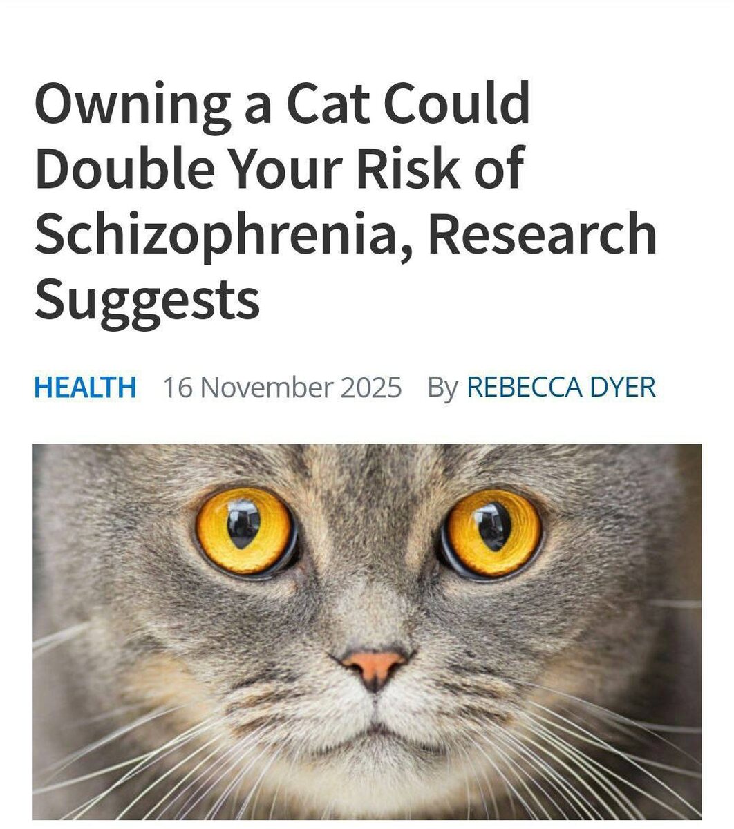 У владельцев кошек риск шизофрении вдвое выше — из-за паразита Toxoplasma gondii, которым они могут заражаться. До 70% кошатников могут быть носителями. Кошки способны влиять на мысли, эмоции и поведение, что у людей с психической нестабильностью может спровоцировать срыв 👉🏻Новости №1 в Ростове 💌Прислать новость/фото Ростов Папа теперь в Ⓜ️🅰️❌