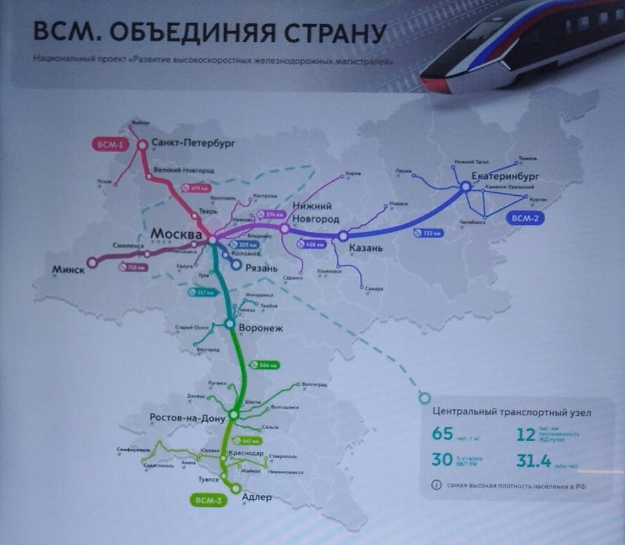 🪖 РЖД представила обновлённую концепцию ВСМ-2 Высокоскоростная магистраль сократит путь между Москвой и Екатеринбургом с нынешних 25–28 часов до 6,5–8. Трасса свяжет Москву, Казань и Екатеринбург, общая протяжённость — около 1532 км. Это будет вторая ВСМ в стране. Первая — Москва — Санкт-Петербург, запуск которой намечен на 2028 год. Время пути там составит 2 часа 15 минут.