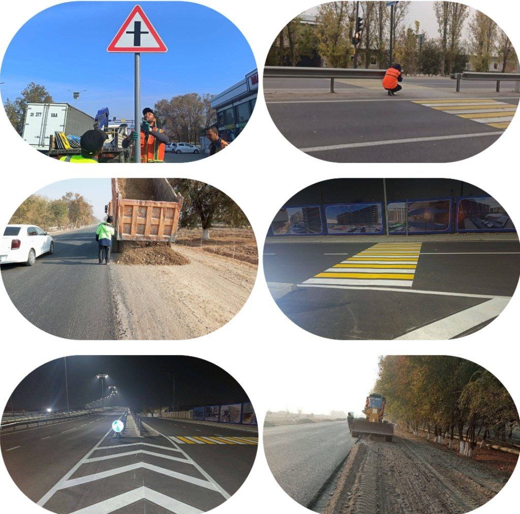 Жиззахда умумий фойдаланишдаги автомобиль йўлларида йўл пойларини мустаҳкамлаш, янги йўл белгилари ўрнатиш, йўл-ётиқ чизиғини чизиш, мавжуд