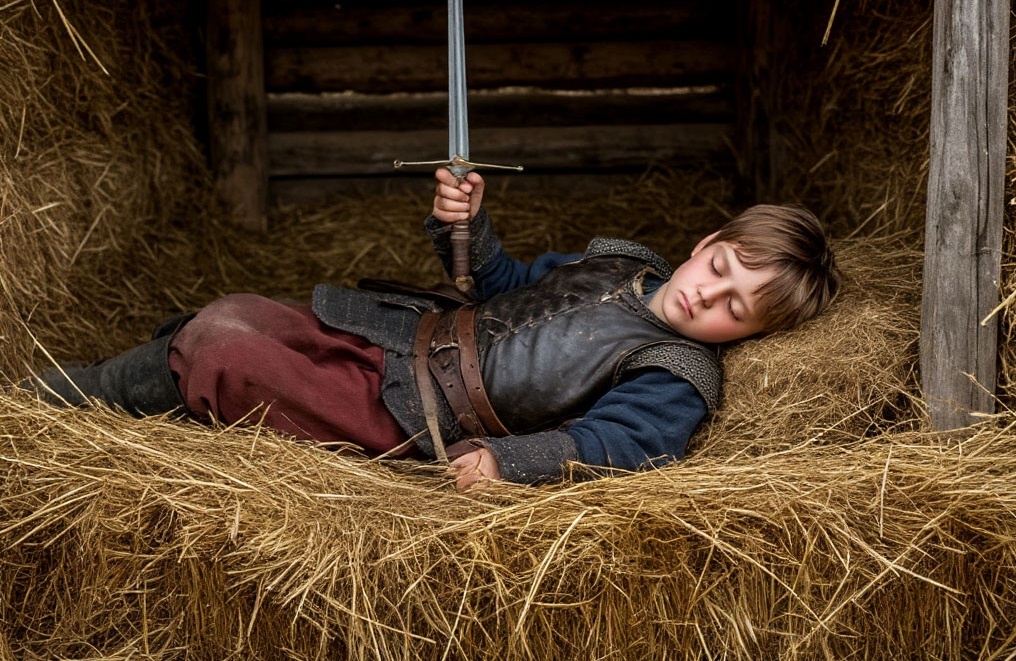 Заночевав опять на сеновале, Простившись вежливо, как воспитали, Шкет утром ручеёк перемахнул И дальше по тропиночке рванул. День длился скучно. Радости, печали, Наверное, устали и отстали. * —Нам тоже отдохнуть пора, прилечь, — Под вечер начал возмущаться меч. —А вон так кстати впереди телега. Спроси – подскажут место для ночлега. Там парень, ослик, котик, пёс, петух. Их песни, музыка ласкают слух. Осёл: —Мы бременские музыканты. * Пёс: —Кор-р-ролевства нашего таланты. * Кот: —Тихо будете себя вести, Тогда в столицу можем подвести. Меч: —Вы беременные поголовно?!!! * Петух: —Балбес, да ты ослепший словно. Взгляни на бороду, хвост, гребешок… * Хихикнул шкет: —Ну ты даёшь, клинок. Пёс: —Вот и стены. Стр-р-ража кр-р-рутит вор-р-рот. Сейчас вы с нами попадёте в гор-р-род. Мы будем пр-р-редставление давать. Пр-р-рошу молчать и больше не мешать! Животные надели куртки, брюки, Крутили сальто, выполняли трюки. Толпа кричала радостно: «Ура!!!» Удачно шли сначала номера, Но вскоре вышла на балк