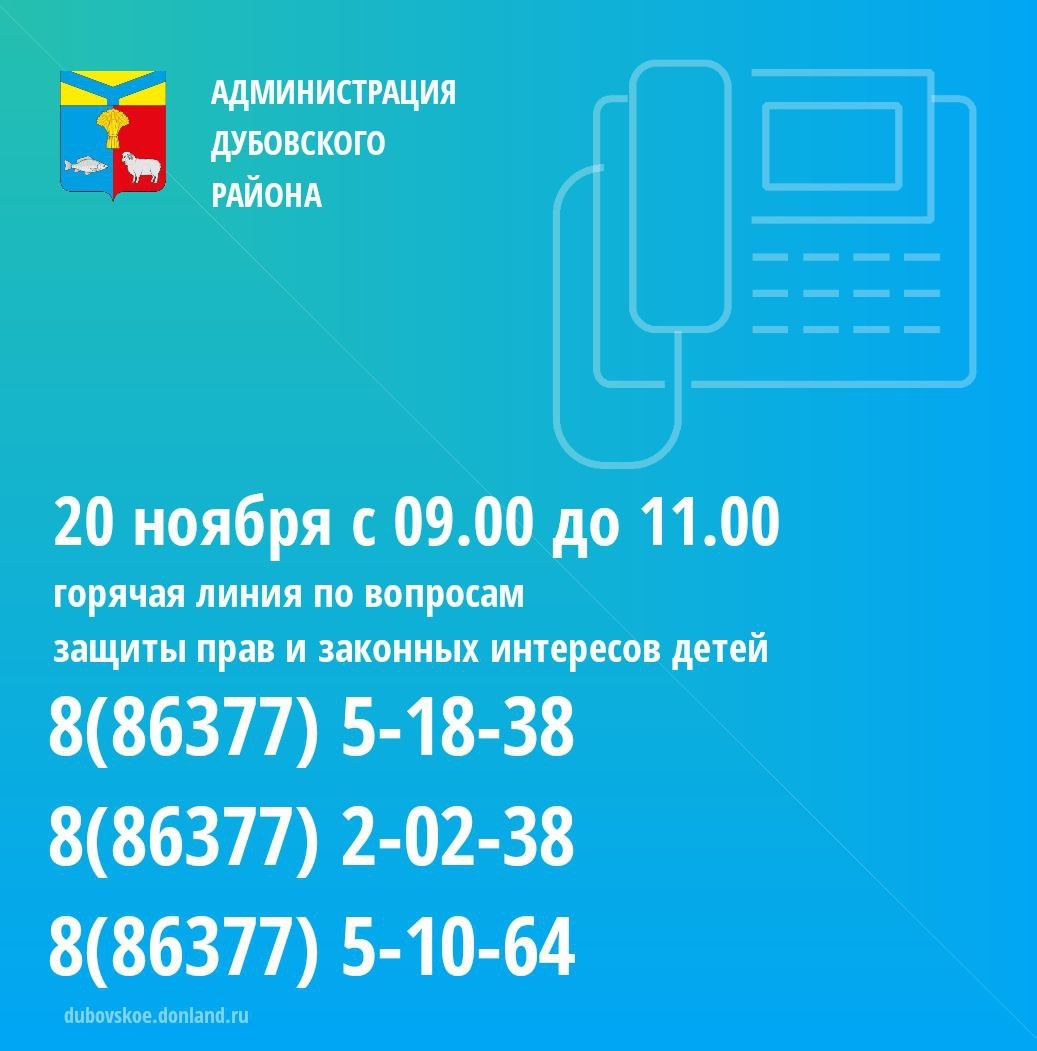 Комиссией по делам несовершеннолетних и защите их прав администрации Дубовского района 20 ноября будет проводиться консультирование