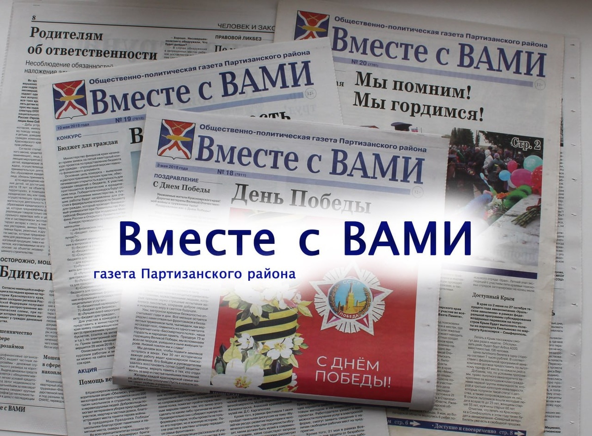 95 лет «Вместе с Вами» Сегодня, 19 ноября, районная газета "Вместе с Вами" празднует 95-летие со дня основания. История издания началась 1 мая 1930 года, когда выездная редакция "Красноярского рабочего" выпустила первый номер газеты под названием "Вперед, за сплошную коллективизацию" в Партизанском районе. В ноябре того же года издание получило название "Красный партизан", под которым выходило более 60 лет. За девять с половиной десятилетий газета прошла через все испытания времени: работала в годы Великой Отечественной войны, пережила ликвидацию района в 1962-1967 годах, сменила помещения и названия. В 1990-е годы издание получило название "Вместе с Вами", а в 2015 году получило статус краевого государственного автономного учреждения. За 95 лет через редакцию прошли десятки журналистов и полиграфистов, многие из которых посвятили работе в СМИ всю свою трудовую жизнь, сохраняя традиции качественной районной журналистики. Сейчас, в эпоху новых перемен в жизни Партизанского района изд