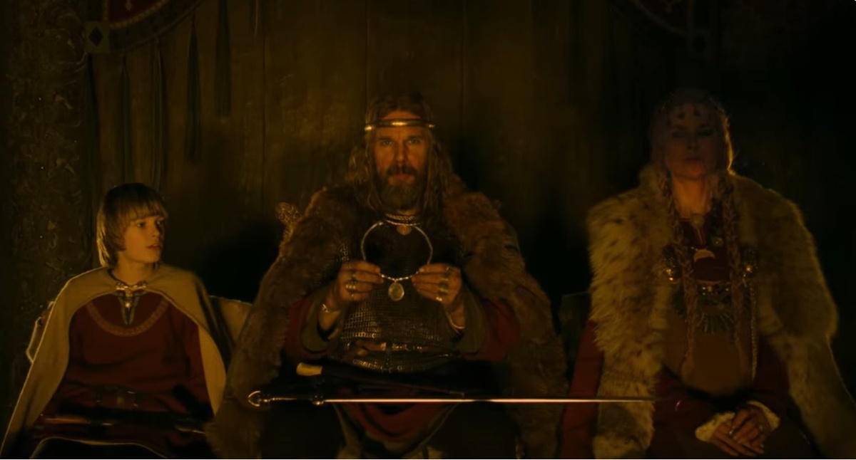 Когда Амлету видится жрица, которая прям как отец в Короле льве говорит ему - вспомни кто ты, он решает поехать к дяде и начать мстить. Только вот Ольга сразу видит что он не раб, а вот все остальные вообще ничего не замечают.