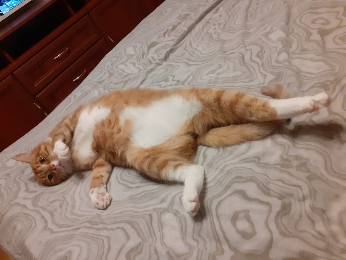 Кто то собирается на работу, а кто то лениво развалился и решил ещё поспать) у него лапки же 😍
