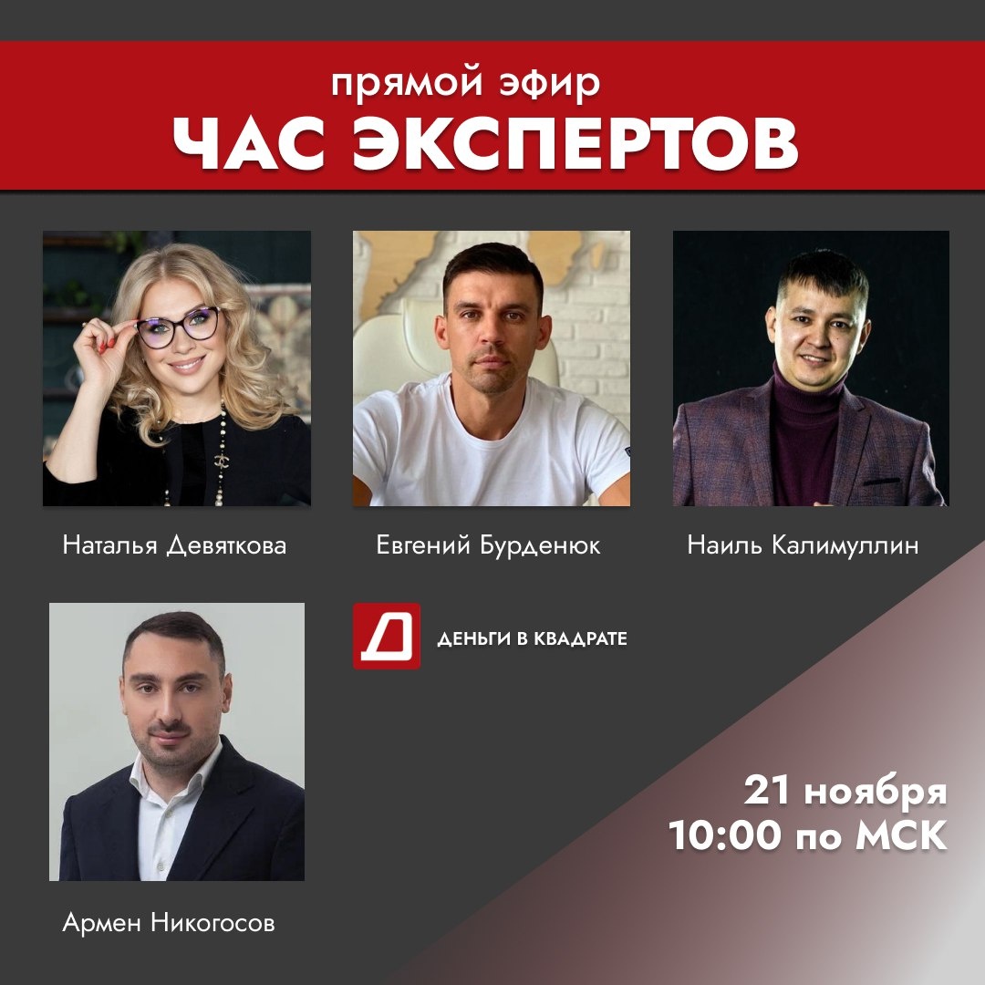 🤲ЧАС ЭКСПЕРТОВ | РАЗБОР ВАШИХ ВОПРОСОВ В ПРЯМОМ ЭФИРЕ 🔥 Прямой эфир, где невозможное превращается в рабочие инвестиционные кейсы Одна голова хорошо, а две лучше! Каждый из нас хотя бы раз сталкивался с “трудным” объектом: — непонятная локация, — нет арендатора, — проект не бьется в цифрах… ❗️Но где другие сдаются — мы ищем решения. 21 ноября в 10:00 МСК мы снова выходим в эфир, чтобы разобрать реальные кейсы наших учеников. Вы увидите, как экспертный взгляд и правильный вопрос способны изменить судьбу объекта. ❓Что обсудим в эфире 🔸 Как превратить сложные объекты в доходные 🔸 Обсудим ошибки, которые делают новички, и как их не допустить 🔸 Разберем реальные, труднореализуемые кейсы от наших учеников 🔸 Как инвестировать с коммерческую недвижимость с помощью кредитного плеча Среди приглашенных экспертов: • Евгений Бурденюк — человек года Новосибирской области, СEO ГК "Отелит", председатель АМТЦ (Ассоциации малых торговых центров) @Burdenyuk • Наиль Калимуллин – Эксперт в обл