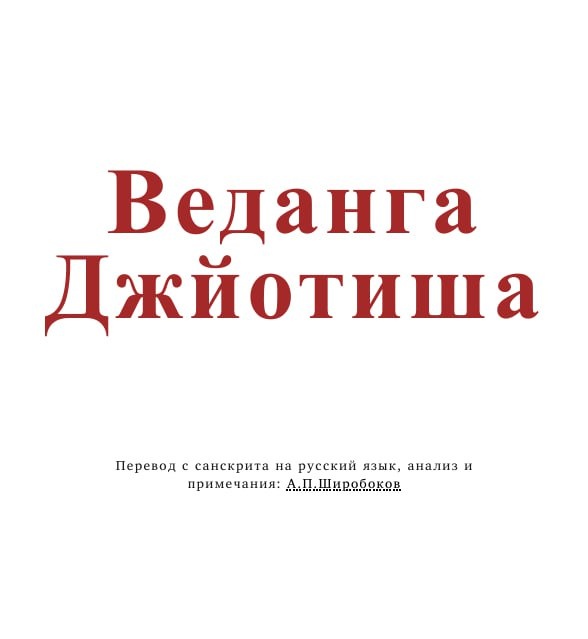 Веданга Джйотиша ✅ Завершил первый русский перевод с санскрита Веданга Джйотиши – древнейшего трактата по Джйотишу, который содержит знания ведийской астрономической традиции, по времени восходящие к 17 веку до нашей эры, а географически указывающие на крайний север современной Индии. Веданга Джйотиша дошла до нас в двух редакциях – Арча Джйотиша (Джйотиша Ригведы) и более поздняя Яджуша Джйотиша (Джйотиша Яджурведы). Текст содержит в основном астрономические формулы по синхронизации лунного и солнечного календарей для расчета верного времени проведения ведийских ритуалов. yo jyotiṣaṃ veda sa veda yajñān «Кто познал Джйотишу, тот познал яджны (жертвенные ритуалы)» – так гласит определение из текста. Также текст содержит перечисление накшатр и их божеств (nakṣatradevatā) и исток системы периодов Вимшоттари даша (кто интуитивно чувствовал, что они связаны с накшатрами – были правы). Отмечу, что из-за повреждений манускрипта и описания сложных математических формул, текст долгое время