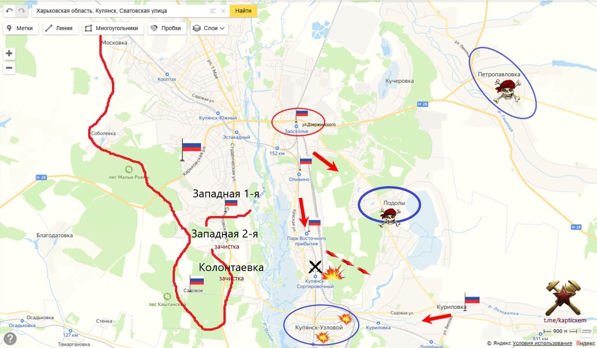 В ответ на пост Купянск В микрорайоне Колонтаевка началась зачистка. Это следующий район города от "Западная 2-я" на юг. А на картах-схемах, что публикует украинский Генштаб, весь город Купянск под их контролем, готовятся удивить свою общественность-)) схемы и карты