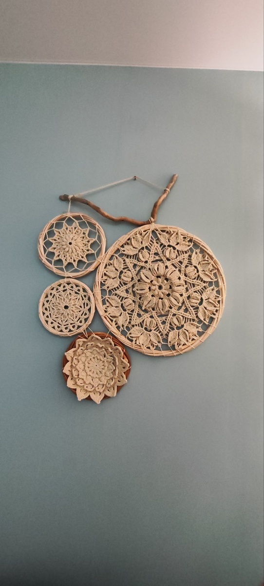 Я вчера тоже свою мини мандалу повесила. Нитки придут, свяжу полноценную версию