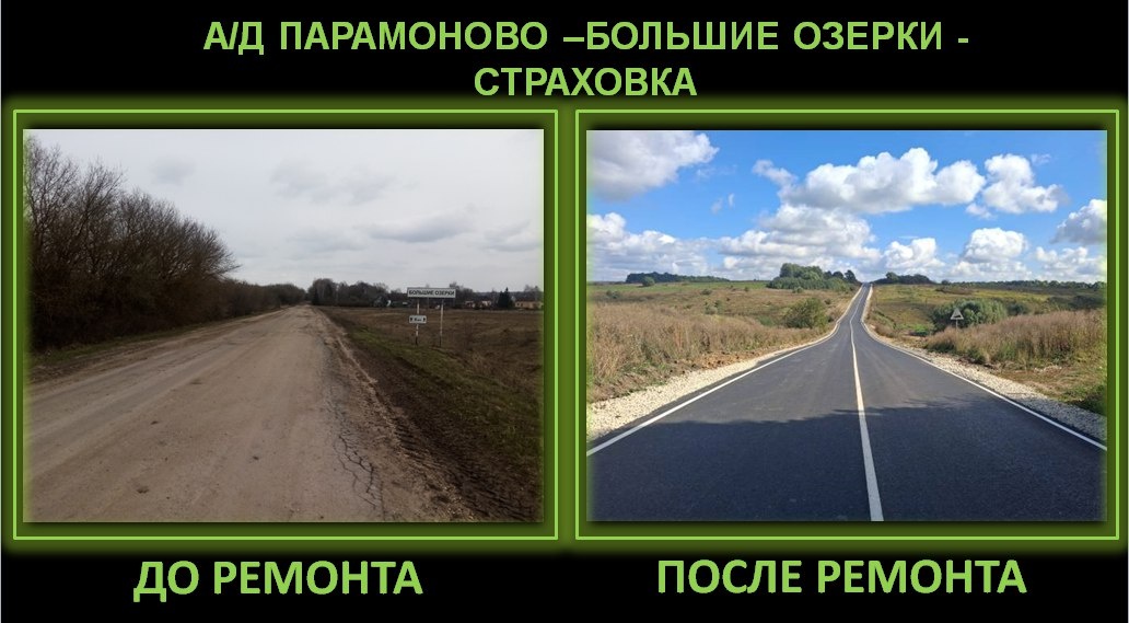 В Орловской области завершен ремонт участка дороги Парамоново – Большие Озерки – Страховка