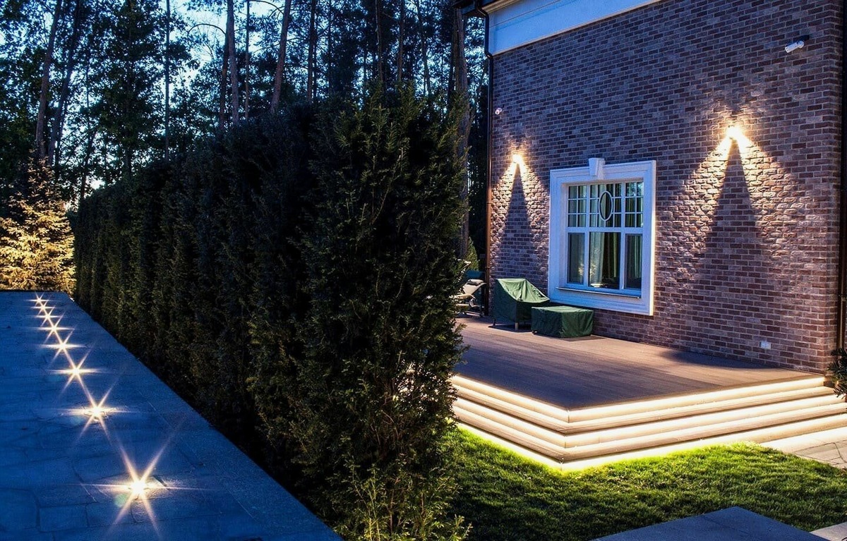 В отличие от прожекторов и фонарей, точечные светильники создают мягкую, аккуратную подсветку, которая подчёркивает форму, текстуру и объем.