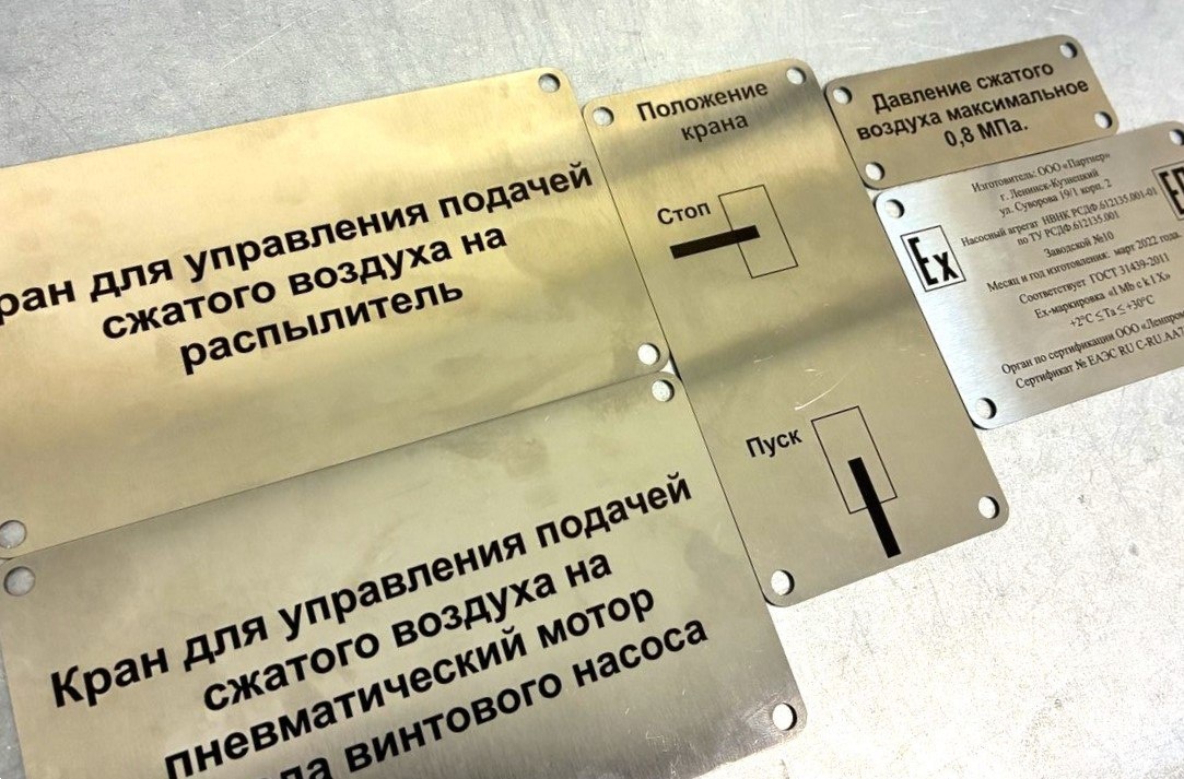 Маркировка промышленного оборудования, таблички из нержавеющей стали