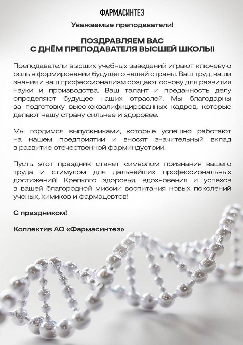 В День преподавателя высшей школы компания «Фармасинтез» подготовила открытку.