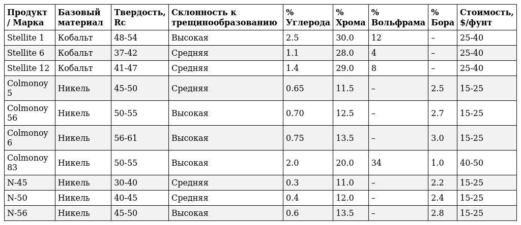 Выбираем материал для наплавки шнеков: Сравнительная таблица и передовые решения! Предлагаем вам наглядное сравнение популярных материалов для наплавки и познакомим с менее очевидными, но очень эффективными решениями! Эта таблица поможет вам сориентироваться при выборе идеального покрытия для ваших задач, учитывая состав, твердость, склонность к трещинообразованию и приблизительную стоимость. Как видите, выбор огромен! 💡Важно помнить: высокая твердость часто идет рука об руку с высокой склонностью к трещинообразованию. А это значит, что при выборе материала нужно учитывать не только абразивную стойкость, но и условия эксплуатации шнека. А что насчет других решений? Альтернативные материалы и передовые технологии! Помимо традиционных наплавок, есть и другие интересные методы повышения износостойкости: 1. Наплавка на основе молибдена: • Неожиданный герой! Эти материалы относительно мягкие (~40 Rc), но обладают уникальной смазывающей способностью. В некоторых случаях молибден увел