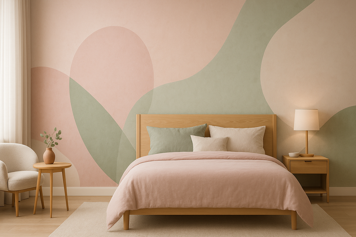 — Не сюжет «во весь рост», а выразительный фон: дуотон/туман, крупная геометрия, стилизованная ботаника, ретро-элементы 90-х/00-х в современной подаче. Фреска — как «личный фильтр» комнаты. 3. Палитра и настроение
