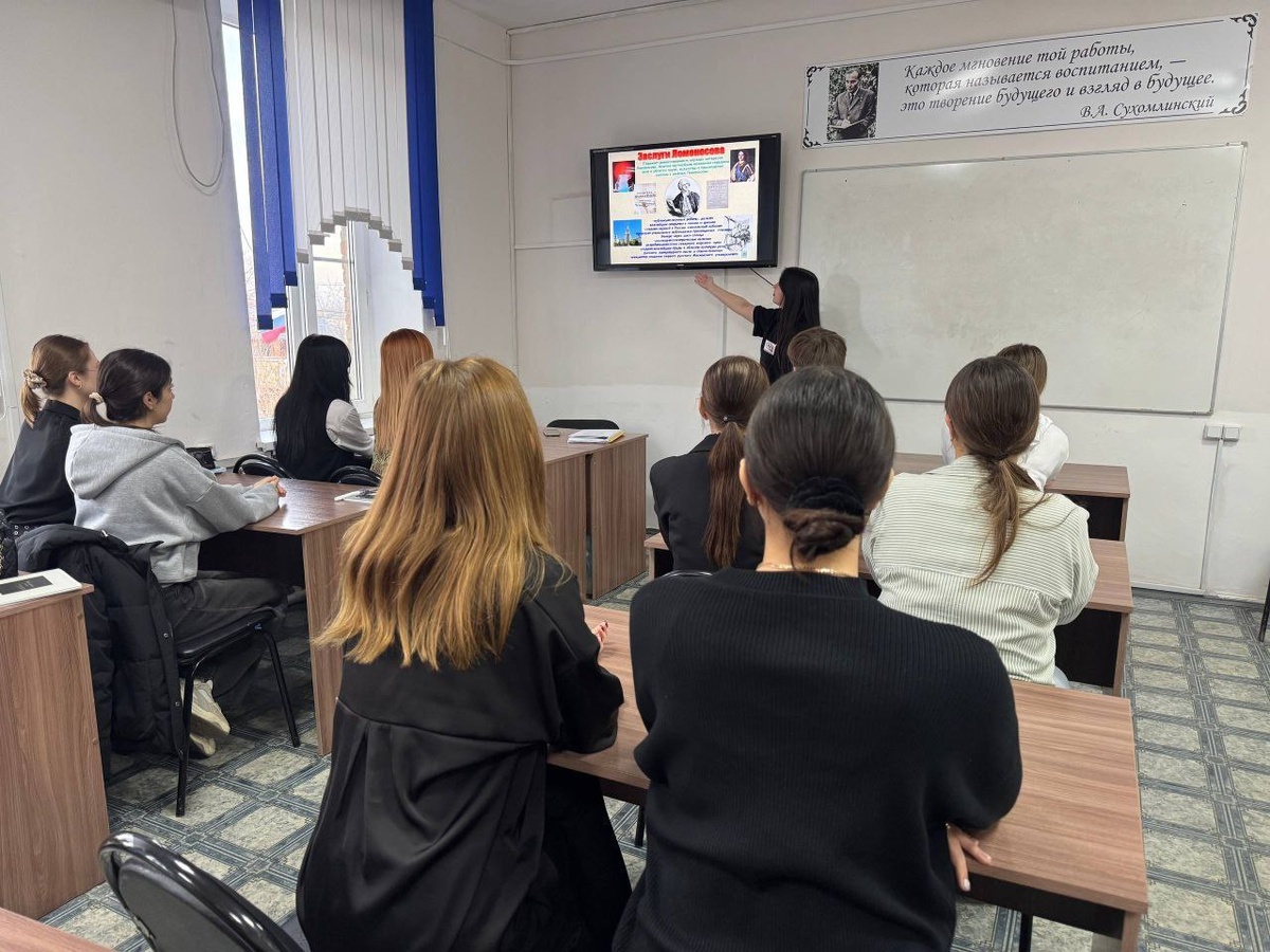19 ноября студенты 4 курса специальности «Преподавание в начальных классах» под руководством заведующей отделением Лейба Н.П. провели кураторский час, приуроченный ко дню рождения Михаила Ломоносова. В рамках мероприятия будущие педагоги подготовили доклады о многогранном таланте великого учёного. Они осветили его вклад в естественные науки, реформу русского языка, поэтическое творчество и работу над мозаичными полотнами. Особое внимание было уделено тому, как на примере Ломоносова — человека из простой семьи, достигшего вершин в науке и культуре, — можно воспитывать в учениках целеустремлённость и любовь к знаниям. Мероприятие прошло познавательно, углубив понимание студентами масштаба личности и наследия Михаила Ломоносова. #учительНачальныхКлассов #ВеликоеНаследие #КачественноеОбразование@salskiubip