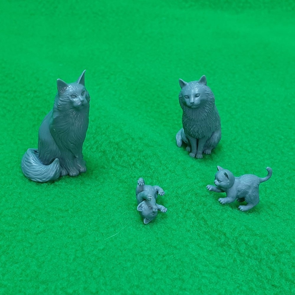 СВ Модель решили выпускать миниатюры и в 1/12 масштабе. Первый набор конечно же "Кошки". Размер фигурок в среднем 40...45 мм, котята 16 мм без хвоста).