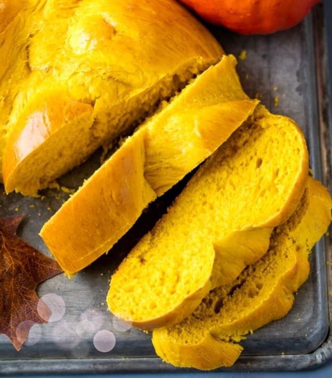 Тыквенная хала - плетеный еврейский хлеб с нежным вкусом и золотистой корочкой