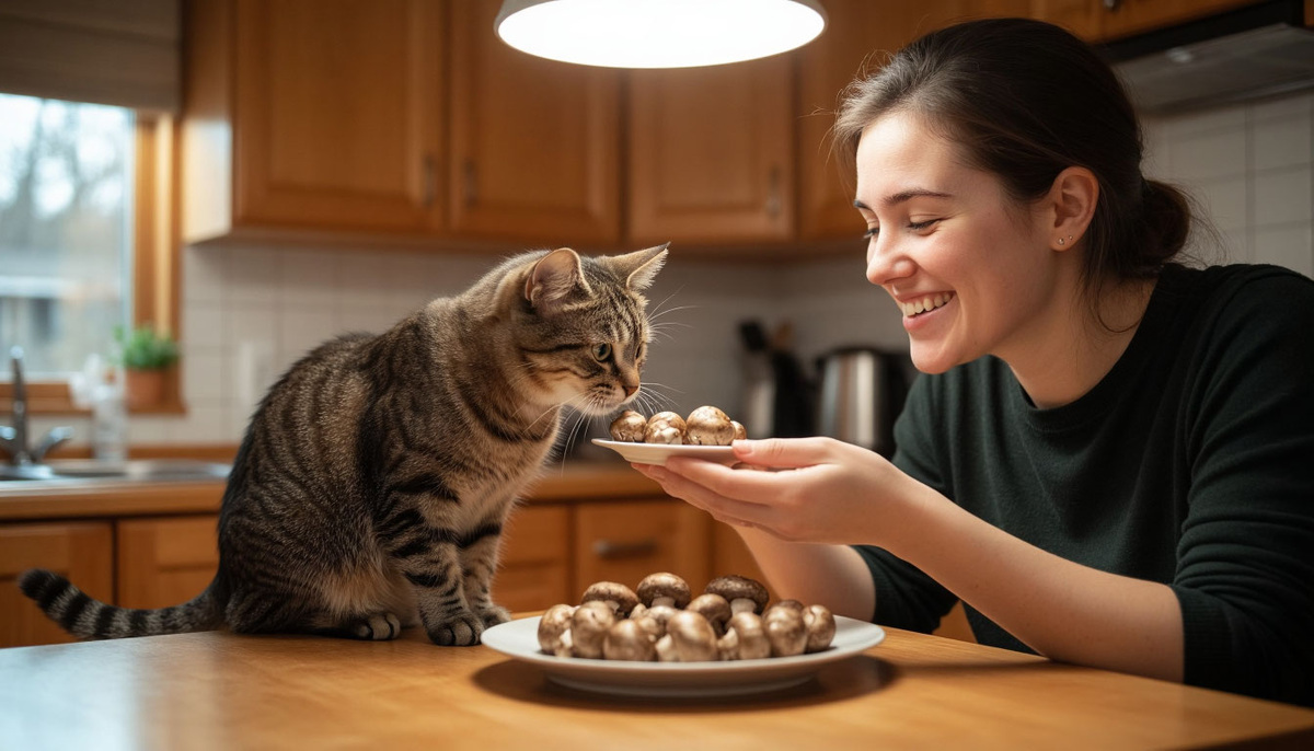 Он положил в блюдце щедрую порцию ещё горячих, ароматных грибов, щедро сдобренных сметаной. Султан, привлечённый запахом, лениво подошёл, обнюхал угощение и с аппетитом принялся его уплетать, громко чавкая и мурлыкая от удовольствия.