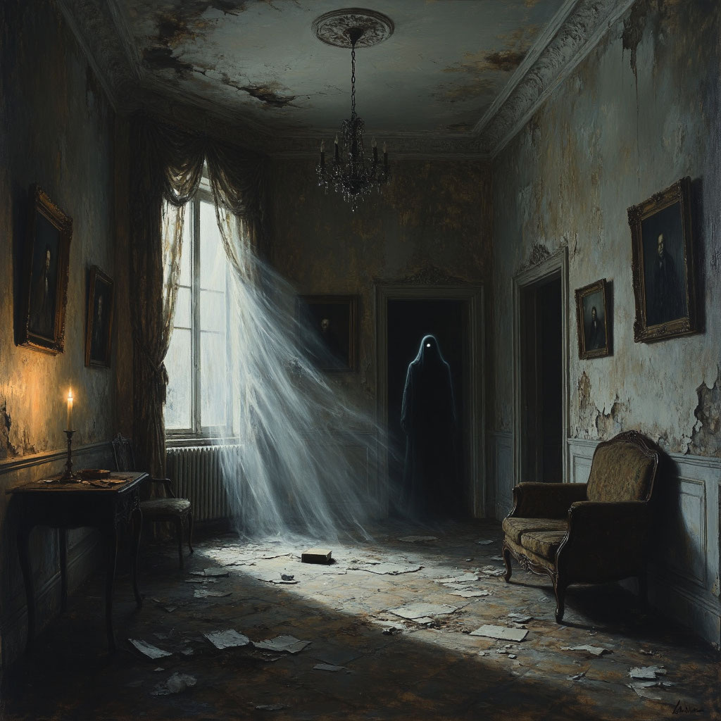 Тёмные углы таили тени, и ей казалось, что за каждым углом кто-то прячется. Изредка до её слуха доносились странные звуки — то ли шорох листьев, то ли чьи-то шаги. Сердце замирало от тревоги и любопытства. Порой ей чудилось, что она слышит шёпот, доносящийся из недр дома, — шёпот, который тут же обрывался, стоило ей прислушаться внимательнее.