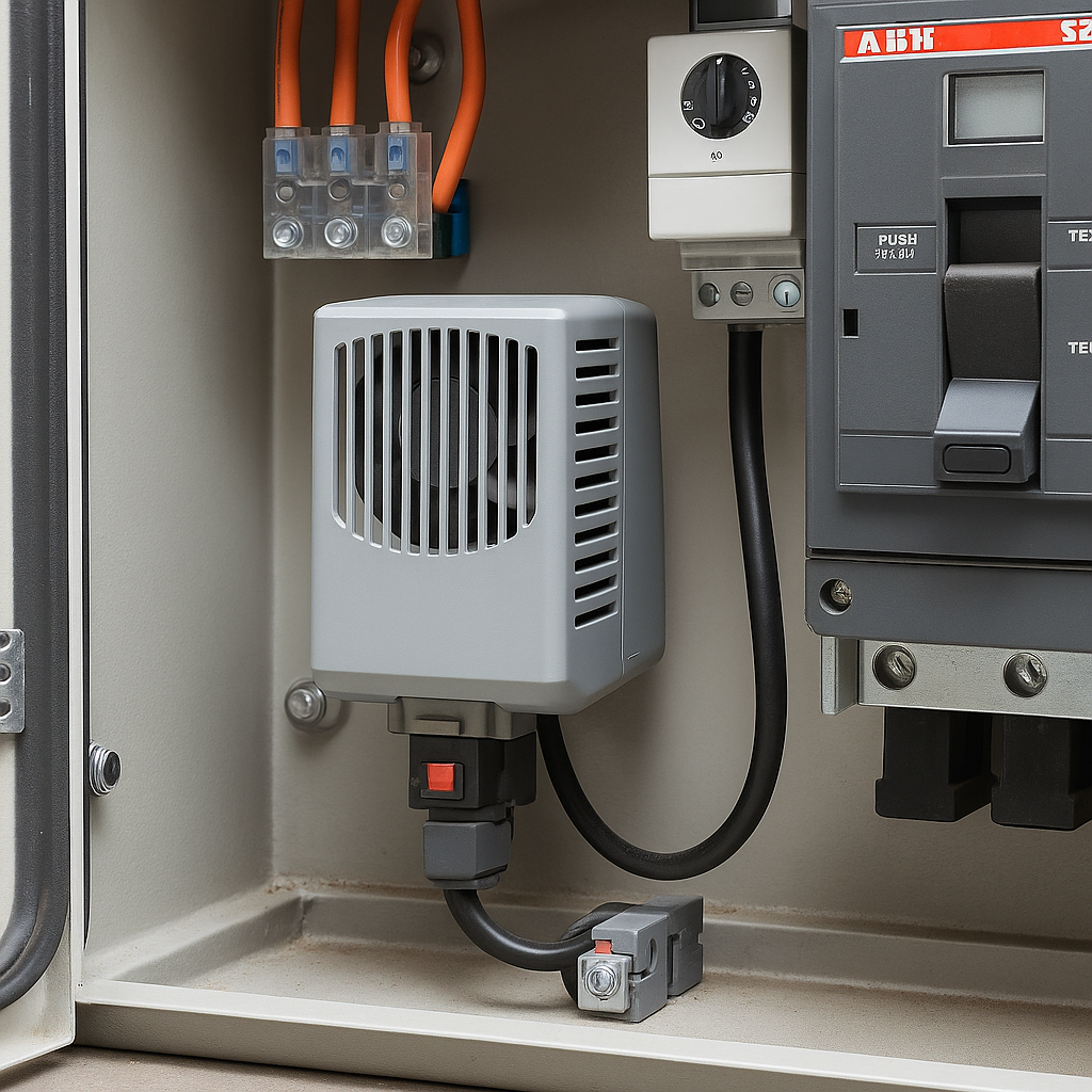 Обогреватели внутри шкафов автоматики, РЗА и распределительных устройств применяются для предотвращения конденсации и коррозии при эксплуатации в условиях повышенной влажности или низкой температуры. При длительной работе оборудования во влажной среде без управления температурой возрастает риск снижения сопротивления изоляции и выхода из строя защиты. Нормативно рекомендовано предусматривать меры по борьбе с конденсатом или увлажнённостью в помещениях и шкафах распределительных устройств. • при температуре окружающей среды ниже примерно +5…+10 °C, если внутри шкафа отсутствует достаточный тепло-ввод;