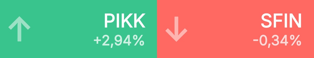 🔺 Топ-10 лидеров роста среди крупнейших акций: ПИК • 445 ₽ • 2,94% ГК Самолет • 883 ₽ • 2,61% РуссНефть • 97,75 ₽ • 1,61% Эн+ • 392 ₽ • 1,30% АФК Систем • 12,69 ₽ • 1,29% Сегежа • 1,16 ₽ • 1,22% ЮМГ • 738 ₽ • 1,18% Юнипро • 1,39 ₽ • 1,09% МТС Банк • 1 259 ₽ • 1,00% ВИ.ру • 67,45 ₽ • 0,99% 🔻 Топ-10 лидеров падения среди крупнейших акций: ЭсЭфАй • 1 350 ₽ • -0,34% Московский • 7,16 ₽ • -0,24% Татнефть п • 530 ₽ • -0,23% ЭЛ5-Энерго • 0,52 ₽ • -0,15% Татнефть • 564 ₽ • -0,12% Инарктика • 470 ₽ • -0,11% Лукойл • 5 055 ₽ • -0,07%