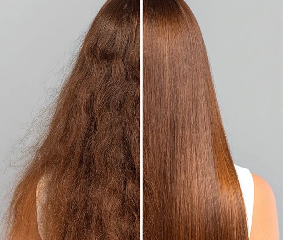 Полностью “починить” поврежденный волос невозможно: это ороговевший стержень, и он не регенерирует, как кожа. Но можно воссоздать эффект здоровой кутикулы, заполнив микроповреждения протеинами и липидами. Регулярное применение профессиональных средств помогает сделать поверхность волоса гладкой, блестящей и защищенной.