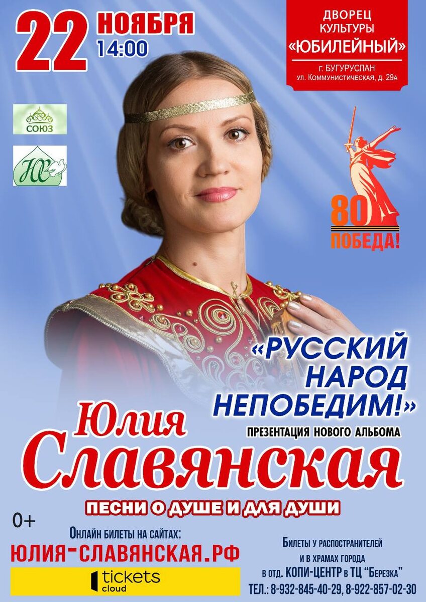 Друзья, приветствую и приглашаю на концерты: - БУГУРУСЛАН - 22 НОЯБРЯ в 14.00, ДК «Юбилейный» БИЛЕТЫ ОН-ЛАЙН: xn----8sbah1apccu0be1mpafe.xn--p1ai/afisha/kon... - САМАРА - 23 НОЯБРЯ в 15.00, ДПЦ «Кириллица» БИЛЕТЫ ОН-ЛАЙН: xn----8sbah1apccu0be1mpafe.xn--p1ai/afisha/kon... Приходите, мои хорошие! До встречи!!!!🙏❤️😘🎶💐🌈 #ЮлияСлавянская #Православие #добрыепесни #концерты #афиша #Москва #Самара #Бугуруслан #Красноуфимск #Россия