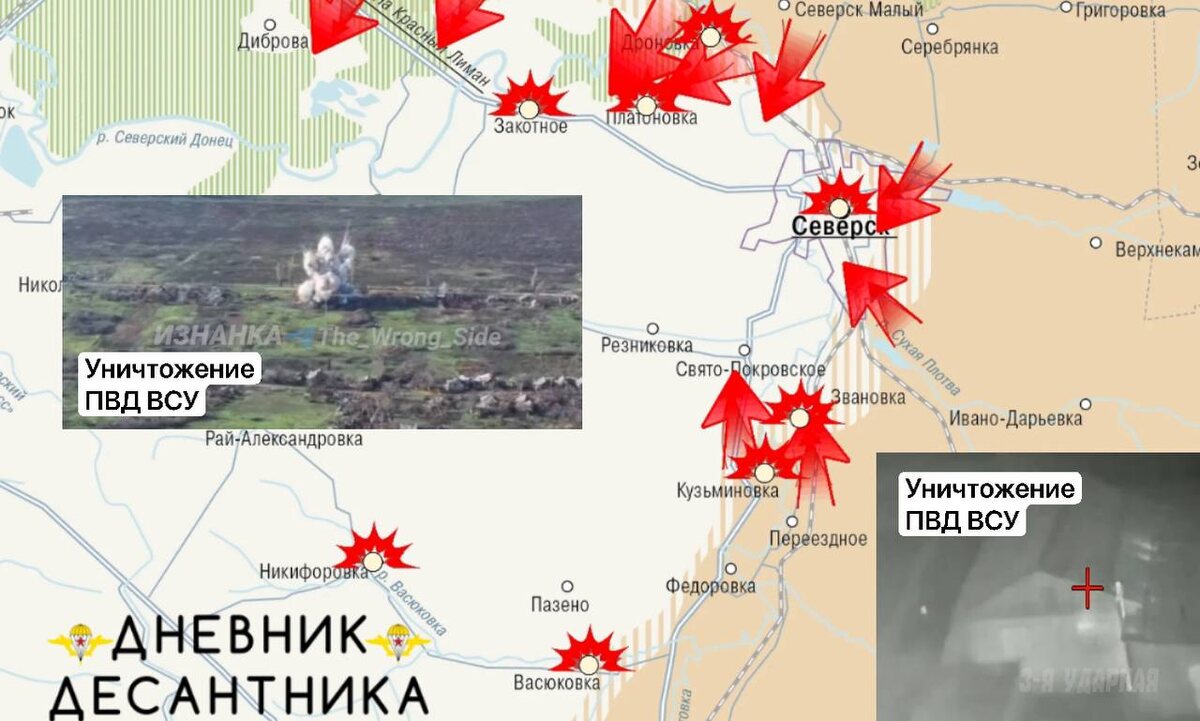 🪂 Северское направление Докладывает Око. ⚡ Общая ситуация на направлении. Очевидно, что сегодня можно говорить о полном оперативном и тактическом блокировании города Северск с северной, южной и восточной сторон. Начата стадия активная боевых действий за город, уличные бои идут в южной части населенного пункта. Однако, все указывает на то, что о быстром окончании штурма говорить не приходится. Продолжаются сражения за Ямполь (северный участок). На южном участке осталась одна трасса снабжения гарнизона ВСУ около Свято-Покровского. Тем не менее уже сейчас противнику не представляется возможным отойти от города беспрепятственно. Северный участок. Западнее Ямполя есть продвижение ВС РФ в районе лесополок. С восточной стороны от этого поселка (между ним и н.п.Дроновка) расширяем территориальный контроль вдоль реки Северный Донец, выдавливая противника из лесных массивов. После взятия Платоновки наши подразделения продолжают наступление стремясь взять под физический контроль трассу Т-05-1