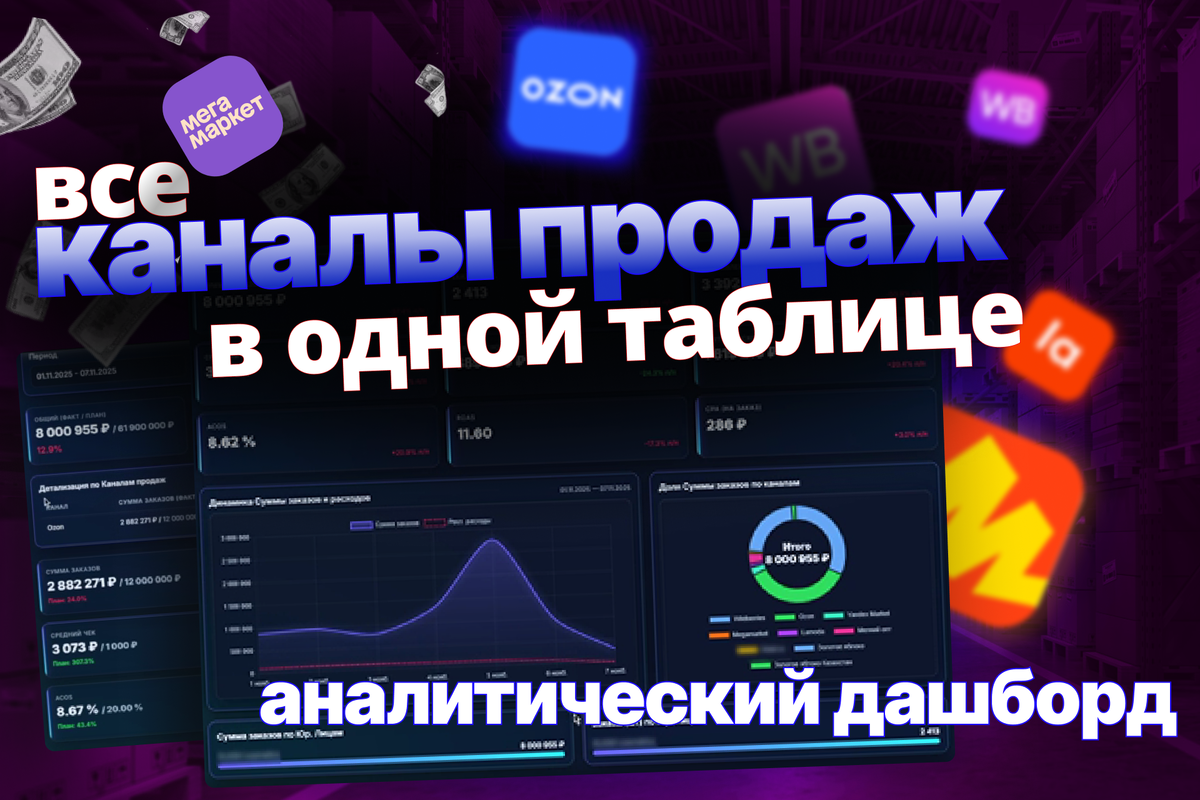 Представьте, что у вас под рукой всегда есть «приборная панель» по всем маркетплейсам и вам не нужно ни открывать отчёты вручную, ни собирать сводные таблицы ночами. Всё уже посчитано, отслежено и красиво разложено по полочкам.