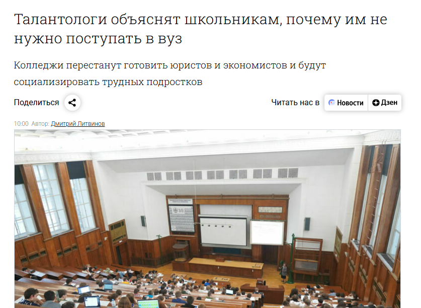 Сначала я увидела это и испугалась. Потом перечитала слово и отпустило. Талантолог, ага. Это танатолог про конец, а эти про таланты, а точнее, про их ставшую такой актуальной невостребованность и про то, почему вашим детям не нужно слишком многого хотеть, в том числе и дальше учиться - для этого другие дети имеются. Которых отчисляют за неуспеваемость, а они снова поступают, чтобы снова быть отчисленными - и так до 4-х раз, такой срок "годности" имеют сданный ЕГЭ. Талантолог - это нужный нынче специалист, да. Как пишут, это специалист, который помогает людям по-новому взглянуть на свои таланты и открыть в себе скрытые способности, а скрытые способности у нас теперь формируются по запросам работодателей, заинтересованных в том, чтобы иметь как можно больше дешевых рук - а дешевым рукам никаких других талантов, кроме выживания на минимальную зарплату, по штату не положено. Вот такие, востребованно - неприхотливенькие талантики и надо развивать, покуда очередь для заключительного посещен