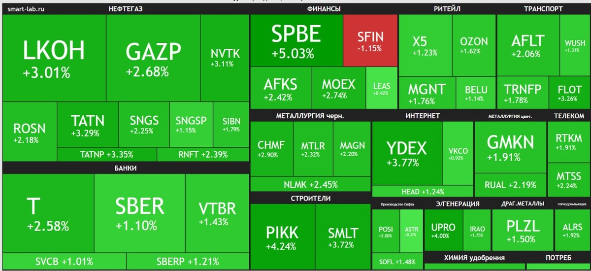Politico со ссылкой на высокопоставленного представителя Белого дома сообщает о возможном рамочном соглашении по прекращению конфликта России и Украины уже на этой неделе. По данным издания, США и Россия якобы вели «тайные переговоры» без участия Украины и ЕС. Официального подтверждения пока нет, и детали неизвестны. Источники отмечают, что давление на Украину может усилиться из-за действий российских войск и внутренних проблем, но пока это лишь оценки, а не факт. На фоне слухов индекс Мосбиржи улетел выше 2600, хотя пока непонятно, насколько это связано с новостями, а насколько — с обычной волатильностью рынка. Но вечером Трамп сделает заявления и откатимся обратно Полная карта рынка у нас тут: https://smart-lab.ru/q/map