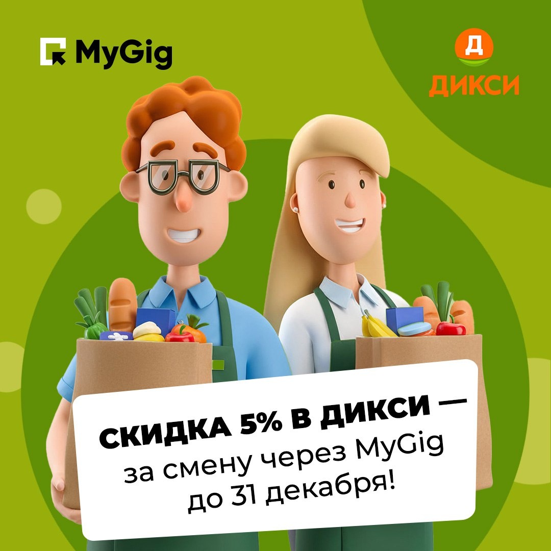 🛒 Отличная новость для гигеров, выбирающих подработку в Дикси! Теперь, когда вы выходите на смену в «Дикси» через Майгиг, вас ждёт приятный бонус — 5% скидка на покупки в магазине в день смены! ✅ Как получить скидку? Всё просто: — Вы должны быть назначены на смену в «Дикси» через MyGig: все данные — особенно номер телефона — указаны корректно — Обязательно отметьтесь в приложении «Дикси Стафф» при начале и окончании смены! — Установите приложение «Клуб друзей Дикси» (КДД) и убедитесь, что номер телефона там совпадает с тем, что вы указали в профиле MyGig 😉 🗓️ Предложение действует с сегодняшнего дня и до 31 декабря 2025 года — для всех профессий (кроме счётчика-ревизора) и всех гигеров, подрабатывающих через MyGig в «Дикси» Скорее выбирайте смену в приложении, выполняйте задание — и не забудьте воспользоваться скидкой от Дикси в этот день 🧡 Например: — Грузчики в Санкт-Петербурге — Сборщики заказов во Всеволожске, ЛО — Продавцы в Твери — Сборщики заказов в Москве — РТЗ в Серги