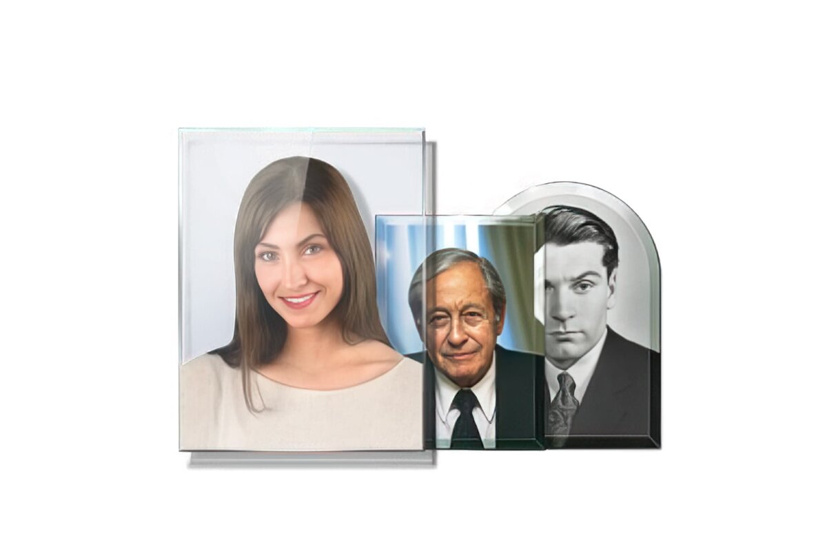 Фотокерамика - один из самых распространённых вариантов. Изображение переносится на основу (стекло, металл, керамогранит) и покрывается тонким слоем керамики, затем проходит обжиг при высокой температуре - более 800 градусов. Изображение как бы “запекается”. Благодаря этой технологии цвета на портрете не выгорают, поверхность не боится дождя, снега, перепадов температур. Такой портрет может быть черно-белым или цветным, с прозрачным или цветным фоном - всё
