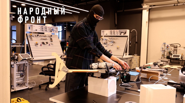 Разработчики из Нижегородской области при поддержке Кулибин-клуба Народного фронта представил беспилотный летательный аппарат самолетного типа с вертикальным взлётом “Дуга”, в котором объединили все свои изделия в сфере связи и видео. “Суть дрона в том, чтобы он взлетал с любой точки, без катапульты. Он взлетает вертикально, как квадрокоптер, достигает определенной высоты и по команде оператора переходит в режим самолёта. Самолёт называется “Дуга”, лететь он может до 50 км, с нагрузкой до 1,5 килограмм. Он может использоваться как ударный дрон или дрон разведчик. Если разведчик, то полезная нагрузка будет в виде камеры и дополнительной батареи, если ударный дрон, то одна батарея и боевая часть”, – рассказал представитель компании “Химера” по производству спецсвязи и БПЛА Сергей. По его словам, основным профилем компании долгое время являлось именно программное обеспечение, средства для ретрансляции связи, видеолинки, катушки с оптоволокном. “Мы решили, что если у нас есть всё, кроме но