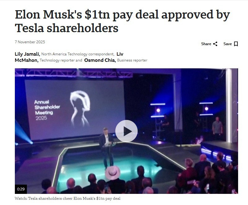 π° ΠΠΊΡΠΈΠΎΠ½Π΅ΡΡ Tesla ΠΎΠ΄ΠΎΠ±ΡΠΈΠ»ΠΈ Π½Π΅Π²Π΅ΡΠΎΡΡΠ½ΡΡ ΠΏΡΠ΅ΠΌΠΈΡ Π΄Π»Ρ ΠΠ»ΠΎΠ½Π° ΠΠ°ΡΠΊΠ° β $1 ΡΡΠ»Π½ Π·Π° 10 Π»Π΅Ρ, Π΅ΡΠ»ΠΈ ΠΎΠ½ ΡΠ²Π΅Π»ΠΈΡΠΈΡ ΡΡΠΎΠΈΠΌΠΎΡΡΡ ΠΊΠΎΠΌΠΏΠ°Π½ΠΈΠΈ Π² ΡΠ΅ΡΡΡ ΡΠ°Π·. ΠΡΠΎ ΠΎΠ·Π½Π°ΡΠ°Π΅Ρ, ΡΡΠΎ ΠΠ°ΡΠΊ Π±ΡΠ΄Π΅Ρ ΠΏΠΎΠ»ΡΡΠ°ΡΡ $100 ΠΌΠ»ΡΠ΄ Π΅ΠΆΠ΅Π³ΠΎΠ΄Π½ΠΎ β Π±ΠΎΠ»ΡΡΠ΅, ΡΠ΅ΠΌ Π²ΡΠ΅ ΡΡΠΈΡΠ΅Π»Ρ Π½Π°ΡΠ°Π»ΡΠ½ΡΡ